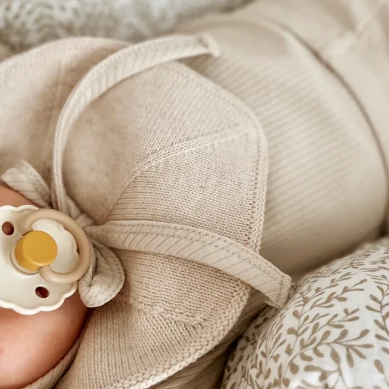 Dit zeer zacht gebreide slabbetje is gemaakt van GOTS-gecertificeerd biologisch katoen.