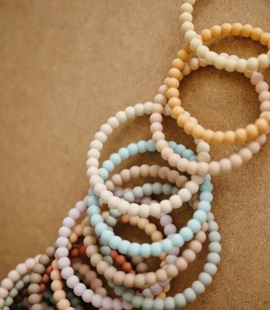 Doordat de drie bijtspeeltjes in de vorm van een ring zijn gemaakt, kan je ze gemakkelijk om je pols hangen als armband en aan jouw kindje geven als het nodig is. Ideaal!