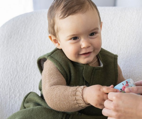 De Disana loop/slaap-zak is gemaakt van biologisch gekookte wol aan de buitenkant en aan de binnenzijde een voering van fijne organische katoen. De slaapzak heeft een mouwloos ontwerp en biedt hierdoor veel bewegingsruimte. De slaapzak is zacht, warm en ademend, waardoor hij ideaal is voor de nachtelijke slaap en dutjes overdag. De natuurlijke wol zorgt voor een goede temperatuurregulatie en voorkomt oververhitting tijdens het slapen. De slaapzak heeft een rits aan de voorkant met aan de bovenzijde een stuk stof waar de sluiting door bedekt wordt. De loop-/slaapzak is verkrijgbaar in verschillende maten en kleuren.