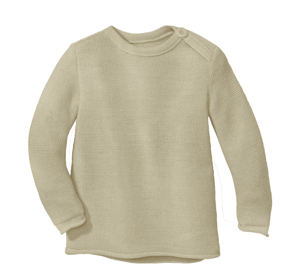 De trui is vervaardigd met Disana’s karakteristieke averechte breisel, dat gemaakt is van fijne merinowol. Deze keuze voor hoogwaardig biologisch materiaal zorgt voor ultiem comfort en warmte. Deze stof voelt ook heerlijk zacht aan op de huid. Of het nu een frisse ochtend is of een winterse dag, deze trui zal je kindje altijd beschermen tegen de kou.