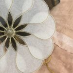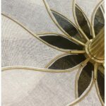 Goudkleurig metalen rozet om aan het plafond te bevestigen, 3cm hoog en 12cm breed.