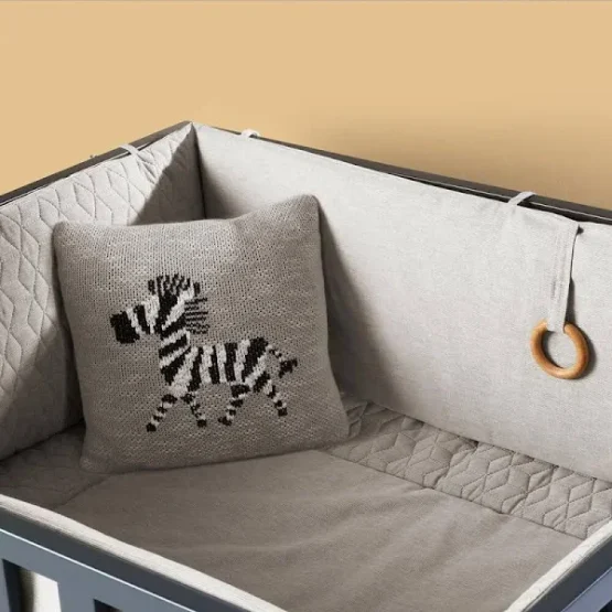 Dit kussentje past perfect bij de andere artikelen van de Quax textiel collectie. Het sierkussen is gemaakt van 100% katoen, heeft een vulling van 100% polyester en heeft een leuk motief in fijn breiwerk. De afmeting van het kussen is 30 bij 30 cm. Je kan het kussentje in de box leggen, maar natuurlijk ook in een bedje of in de bank. De kussenhoes is wasbaar op 30 graden en is voorzien van een rits. Verkrijgbaar in meerdere uitvoeringen. Dit prachtige kussentje is net wat luxer en anders dan de meeste merken.