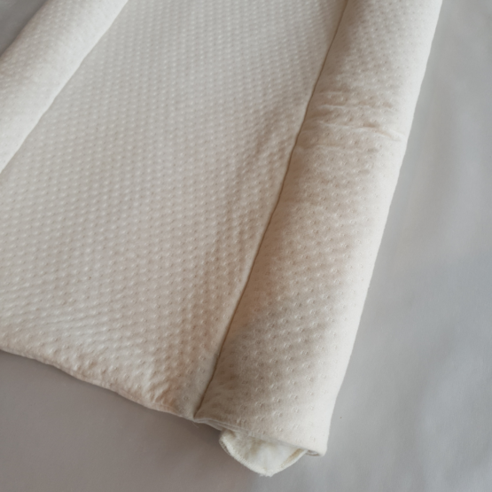 Het beste alternatief voor het reguliere aankleedkussen; zachter en vooral veiliger door het ontbreken van chemische stoffen. Een verademing voor je baby. Gemakkelijk in gebruik op de commode, voor onderweg en ook ideaal als je de baby ‘s nachts bij je in bed wil leggen, veilig op zijn of haar eigen aankleedkussen. Dit kussen is gemaakt van twee lagen wollen kaardvlies en ongebleekte katoen. De opstaande randen zorgen ervoor dat je kindje zich niet zo makkelijk omrolt.